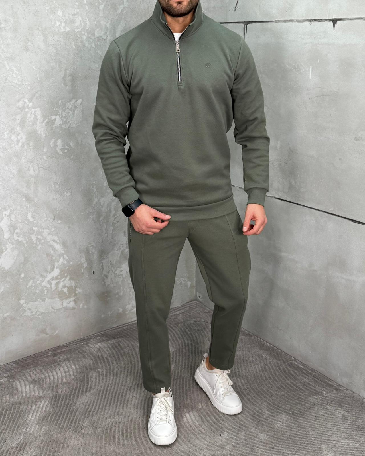Komplet Trenerka sa Polu zipom Maslinasta